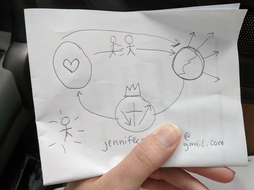 When she was done, I thanked her and turned to leave, but she’d apparently spotted the rainbow chalice pin on my backpack and decided to save my soul.