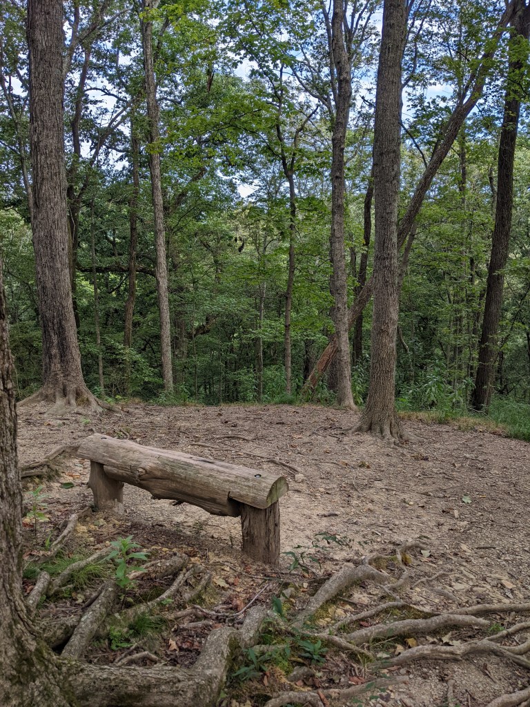 As I climbed further along the winding path, I stumbled across a side trail with a sign that read “Quiet Point.” This trail terminated in a clearing with a small bench facing a circle of trees.